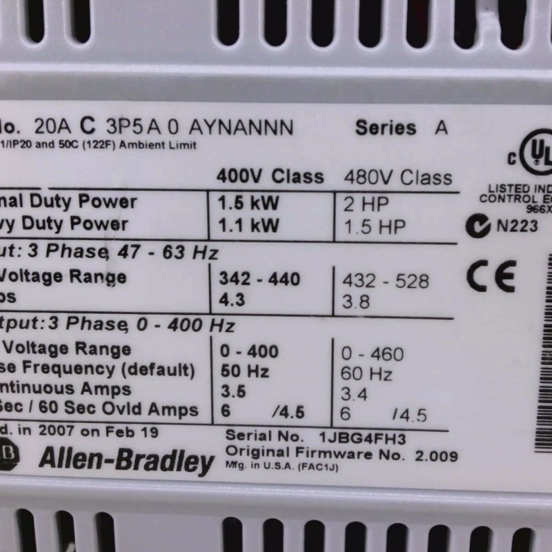 PLC 20AC3P5A0AYNANNN AC Drive