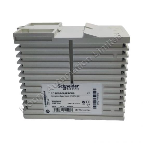 The Schneider TCSESB083F2CU0 is part of the Modicon Networking range, an offer of Modicon Basic Managed Switch.It provides simple and complex connectivity for multiple Ethernet device. It is works at a power consumption of 8W and a rated voltage from 12V to 24V DC.