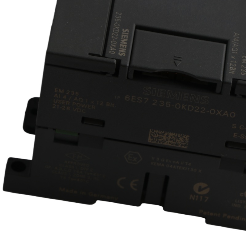 Siemens' part number 6ES7235-0KD22-0XA0 is an analog I/O module designed primarily for use with the S7-22X CPU. This module features four analog inputs capable of handling signals within the range of ±10 V DC and has one corresponding analog output also rated for ±10 V DC. Its conversion resolution is set at 12 bits, ensuring accurate signal processing.