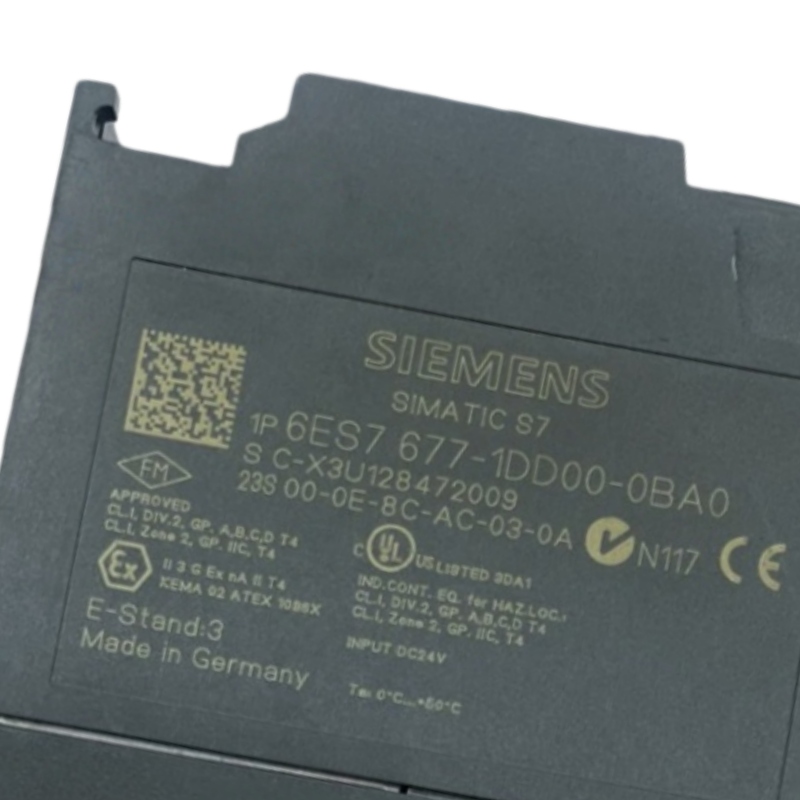 The Siemens 6ES7677-1DD00-0BA0 SIMATIC S7 modular embedded controller is primarily used in industrial automation and smart manufacturing. It is suitable for systems requiring high reliability, real-time control, and distributed processing, such as production line automation, process control, energy management, and traffic control. It finds applications across industries including automotive, chemical, power, logistics, and food & beverage sectors.