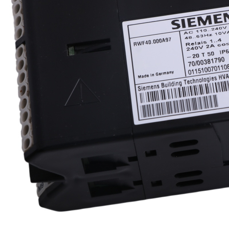 The RWF40.000A97 is used primarily for the control of temperature or pressure in oil- or gasfired heating plants. It is a compact modulating controller without angular positioning feedback acting on the burner.An external switch can be used to change it to a 2-position controller for the control of 2-stage burners.